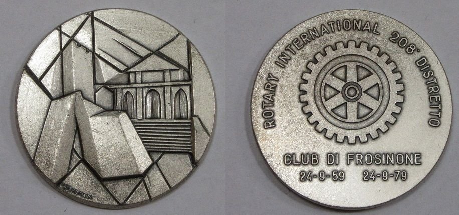 Rotary Club di Frosinone 2009 Dritto: Stemma coronato della città di Frosinone entro ovale sotto: E. AMBROSETTI Stemma del Rotary International (ruota dentata) sotto: - 1959 • 2009 - |