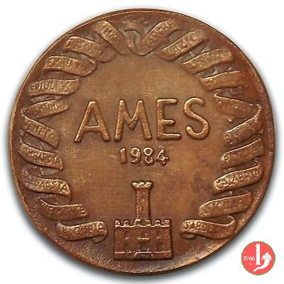 Comune di Frosinone - AMES 1984 Dritto: leone rampante a sx (logo di Frosinone) nel campo, a sx: FROSI = NONE in alto a dx: GISMONDI in basso: Palazzo turrito | |