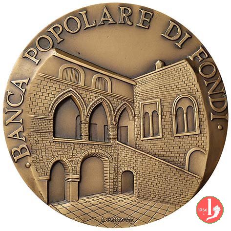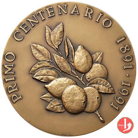 100° Banca Popolare di Fondi 1991 Dritto: BANCA POPOLARE DI FONDI Vista della sede della Banca in basso: L. PANCOTTO Ramoscello con limoni in basso: S. JOHNSON | |