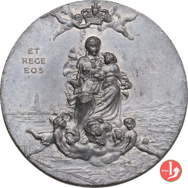 275° Dedicazione Genova e Liguria 1912 Dritto: CCLXXV ANNIVERSARIO DELLA DEDICAZIONE DI GENOVA E LIGURIA A MARIA SS. vista del Duomo di Genova In alto a sx: stemma della città In basso a sx: JOHNSON Nel campo a sx: ET REGE EOS | |