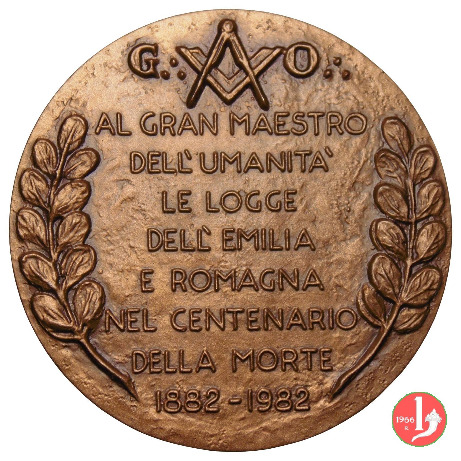 Nel campo tra rami d'alloro: AL GRAN MAESTRO = DELL' UMANITA = LE LOGGE = DELL' EMILIA = E ROMAGNA = NEL CENTENARIO = DELLA MORTE = 1882 - 1982