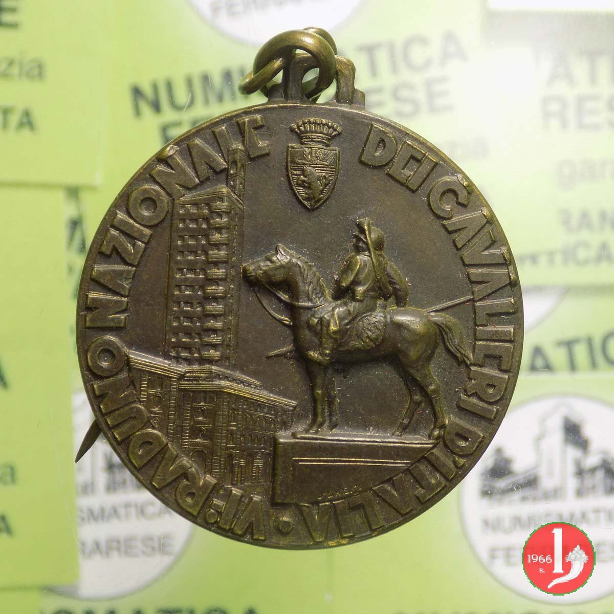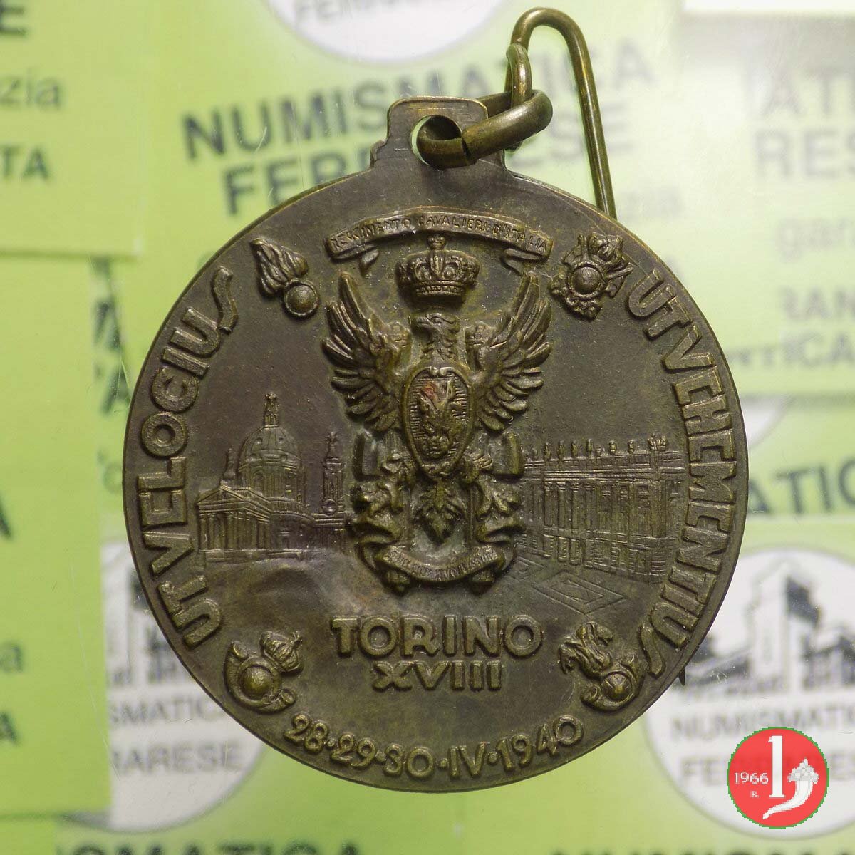 6- Torino 1940 Obverse: VI • RADUNO NAZIONALE _ DEI CAVALIERI D'ITALIA - in alto: Stemma coronato della Città di Torino Monumento equestre a sx e sullo sfondo la Torre Littoria di Torino sulla base: SENESI Aquila Savoia coronata tra loghi e la vista della Basilica di Superga e Palazzo Madama in basso: TORINO = XVIII | |