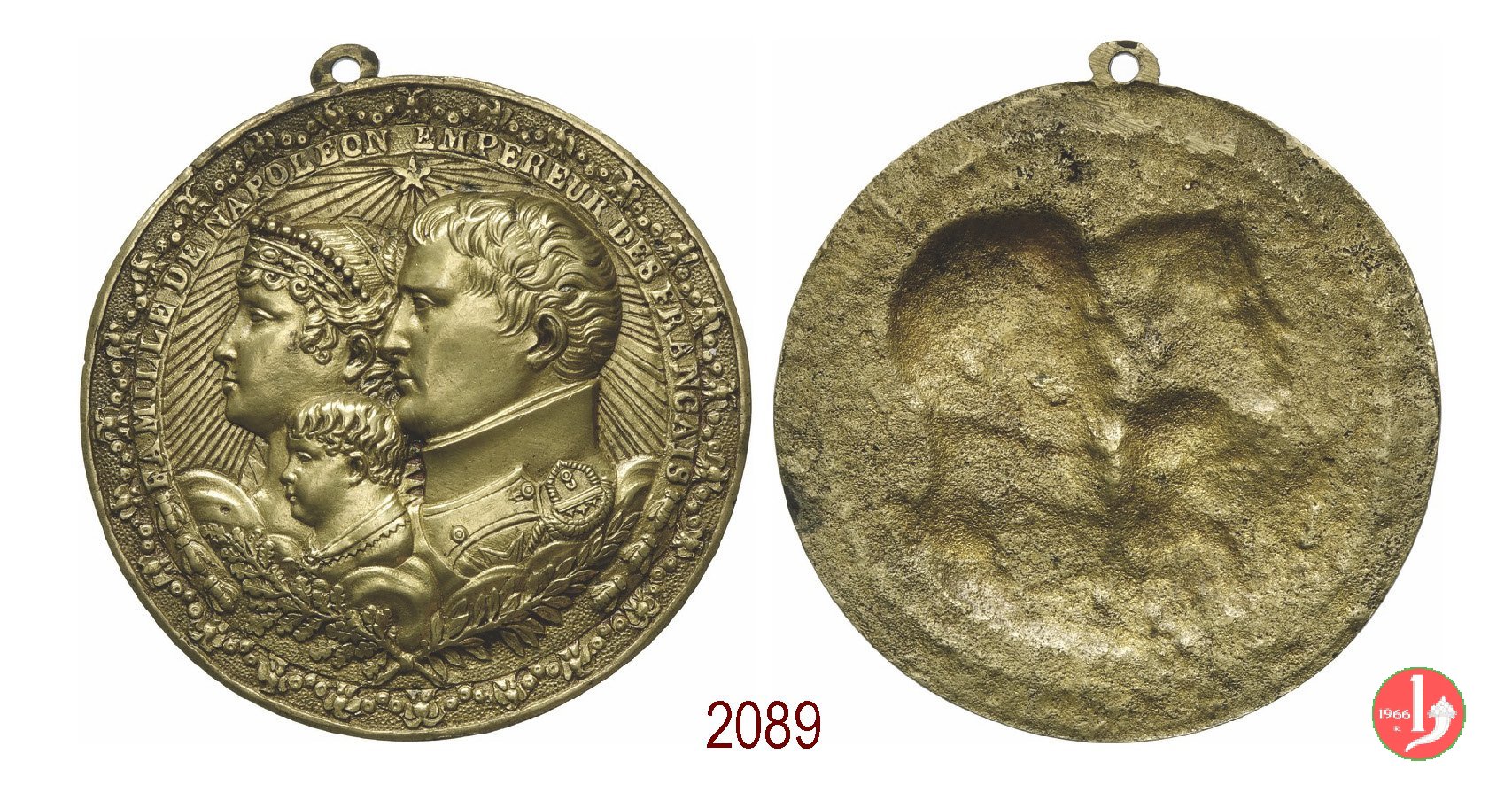 Nascita del Re di Roma 1811 -B1112 Dritto: NAPOLEON I' MARIE LOUISE. NAP. F. J. C. ROI DE ROME entro corona d'alloro: i tre busti accollati a sx | |