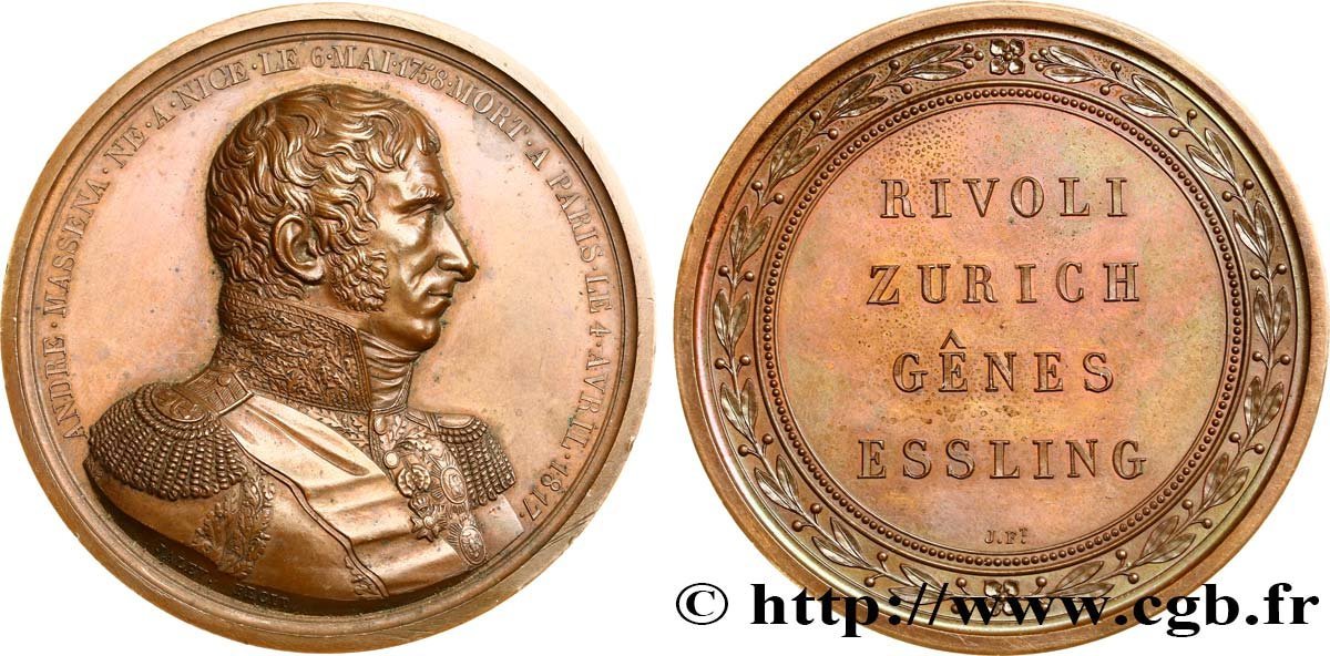 Morte di Andrea Messena 1817 -B1790 Dritto: ANDRE • MESSENA • NE • A • NICE • LE 6 • MAI • 1758 • MORT • A PARIS • LE 4 • AVRIL • 1817 busto in uniforme militare a dx con decorazioni sul taglio spalla: JALEY • FECIT in basso: J.F.t | |