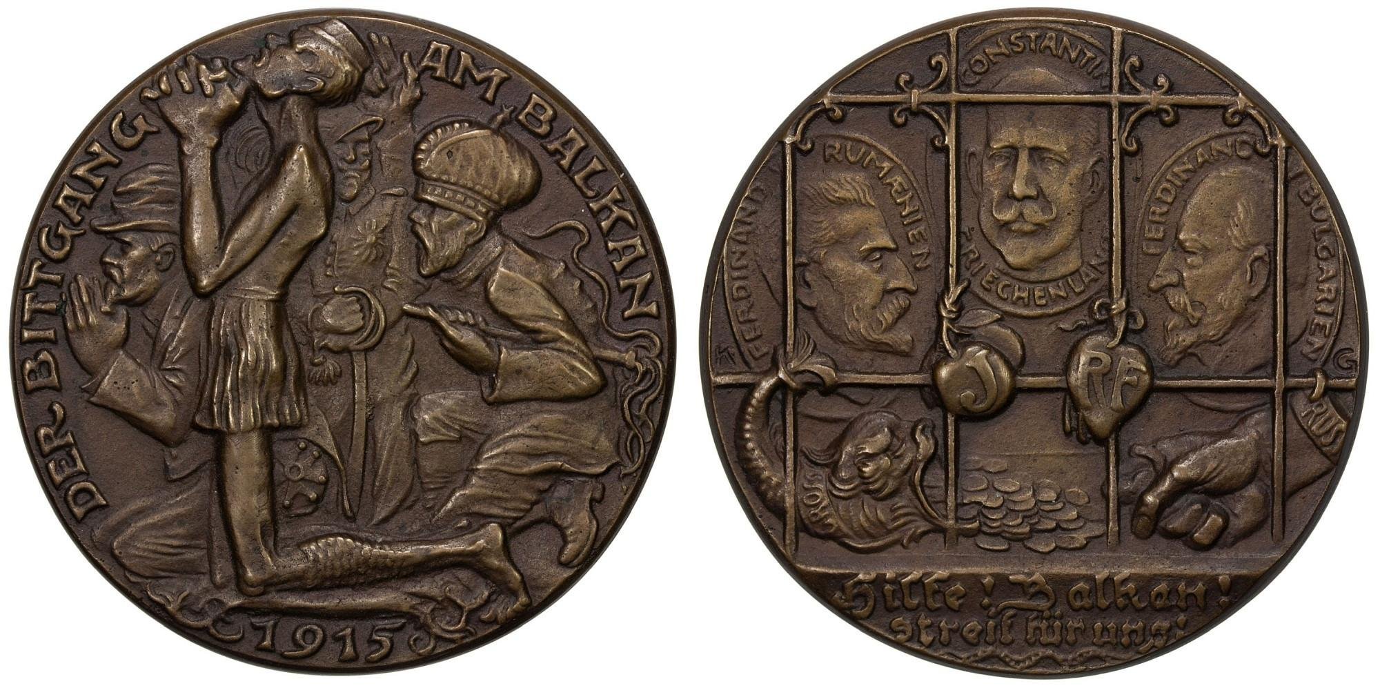 Verso: entro tre medaglie ovali entro finestra con grata: FERDINAND RUMAENIEN busto a dx di re Ferdinando di Romania _ CONSTANTIN GRIECHLAND busto di fronte di re Costantino di Grecia _ FERDINAND BULGARIEN busto a sx di Re Ferdinando di Bulgaria
