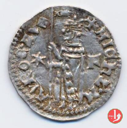 Soldino Dritto: ✠ MIChL' MAVROC DVX, il doge stante a sinistra con il vessillo, in campo a sinistra stella e a destra iniziale del massaro Verso: ✠ • S • MARCVS ![]() VENETI ![]() , leone in soldo |