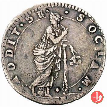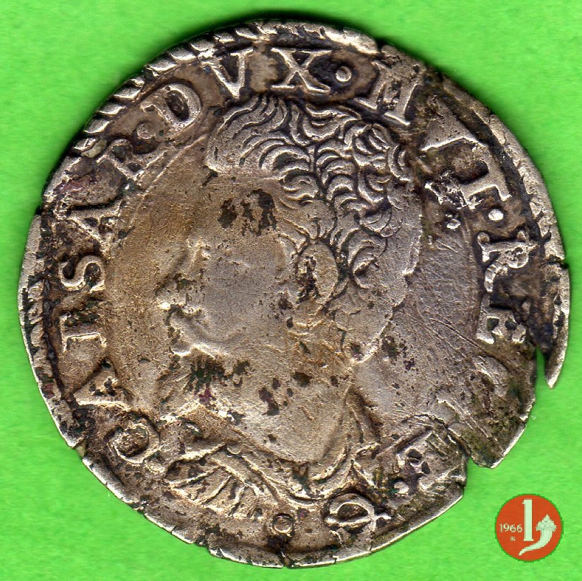 Doppia con data Dritto: CAESAR DVX MVT REG C Testa del Duca a destra; sotto • L • S • La Pazienza, in piedi di fronte, con la testa rivolta a destra e le braccia conserte. In esergo la data. | |