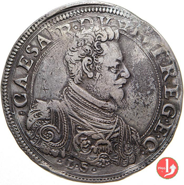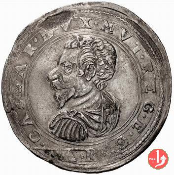 Ducatone con data Dritto: • CAESAR • • DVX • MVT • REG • E • C • Busto a destra, corazzato e col collare del Toson d'oro; sotto • • L • • S • • L'Abbondanza, incedente a sinistra, tiene nella destra protesa un fiore e con la sinistra sorregge la veste; davanti ad essa una cornucopia; dietro, un'ancora: dall'alto a sinistra raggi. In esergo • data • | |