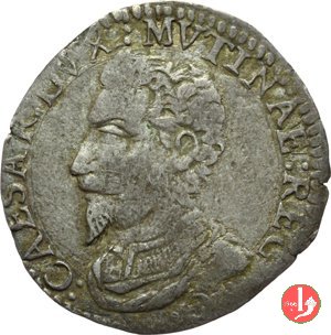 Ongaro 1598, 1600 Dritto: ![]() CAESAR ![]() DV X ![]() MVT ![]() REG ![]() C" ![]() ![]() Il Duca coronato e armato, incedente a destra, tiene nella destra lo scettro