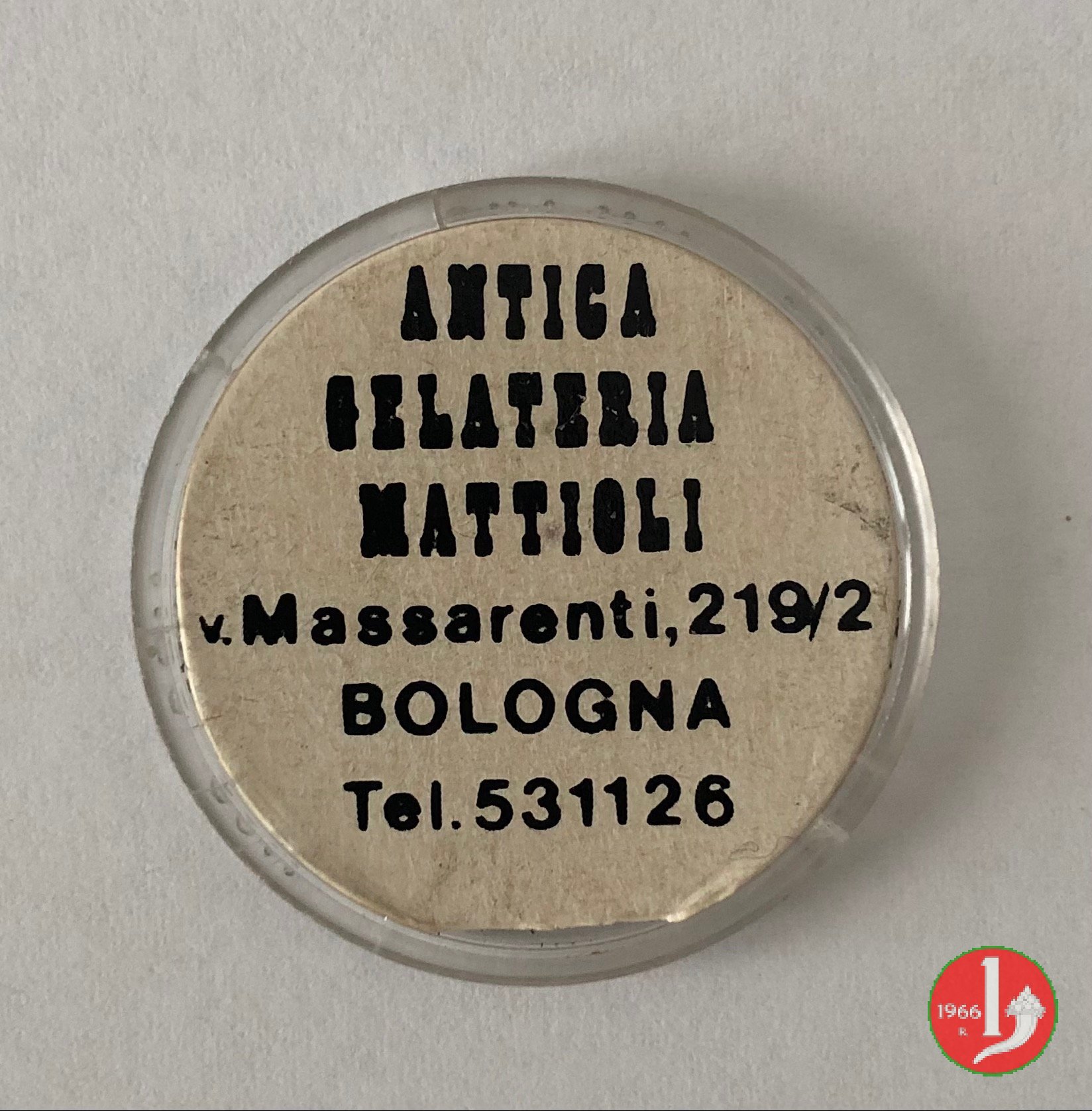 Bologna - Antica Gelateria Mattioli 1° tipo Dritto: Marchio STUDIO PANIZZOLI - MILANO MOD. DEP. su plastica trasparente. Francobollo di vari valori serie siracusana. Verso: Pubblicità Antica Gelateria Mattioli 1° tipo | |