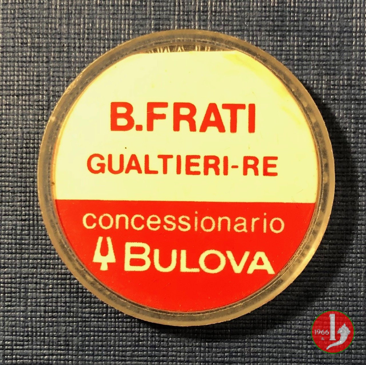 Gualtieri - B.Frati Concessionario Bulova Dritto: Marchio STUDIO PANIZZOLI - MILANO MOD. DEP. su plastica trasparente. Francobollo di vari valori serie siracusana. Verso: Pubblicità B.Frati Concessionario Bulova | |
