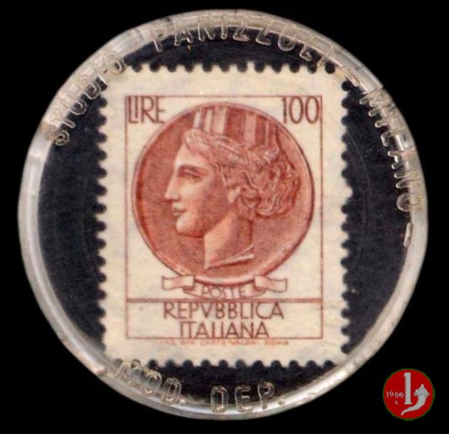 Milano - Studio Panizzoli Azzurro Dritto: Marchio PUBLIRESTO MOD. DEP. su plastica trasparente. Francobollo di vari valori serie siracusana. Verso: Pubblicità Studio Panizzoli | |