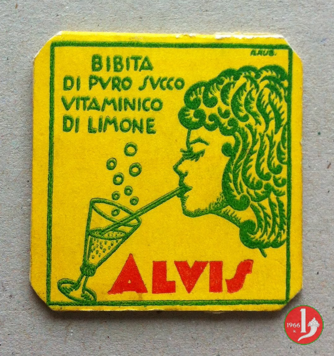 Alvis Limonata - immagine drink Dritto: Cartoncino con francobollo protetto da plastichina trasparente. Disposto intorno da sinistra: LIMONATA ALVIS - PUBBLICITA' AUTORIZZATA G.B. ALLIEVI • CESANO MADERNO • MI Verso: in alto a sinistra su 4 righe BIBITA AL PVRO SVCCO VITAMINICO DI LIMONE sulla destra immagine di una donna che beve da un bicchiere con la cannuccia. sotto ALVIS | |