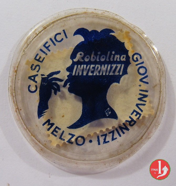 Caseifici Invernizzi Dritto: Francobollo incapsulato da 5 centesimi Lupa delle Poste Italiane. Verso: Scritta CASEIFICI GIOV. INVERNIZZI • MELZO, nel centro testa di giovane che si lecca le dita e la scritta Robolina Invernizzi. | |