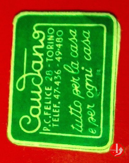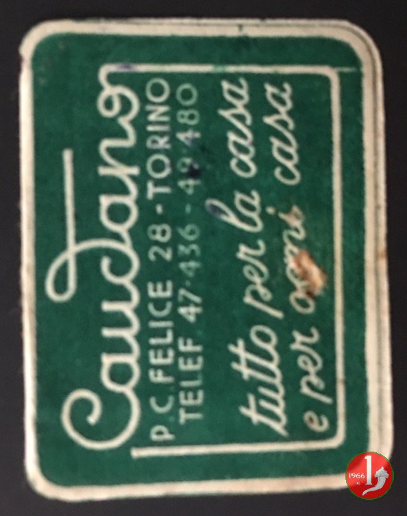 Caudano 2° tipo Dritto: Francobollo della RSI in cartoncino pubblicitario, ai lati TUTTO PER LA CASA E PER OGNI CASA, sotto CAUDANO Verso: su 5 righe - Caudano P.C. Felice 28 - Torino Telef. 47.436 - 49.480 Tutto per la casa e per ogni casa. | |