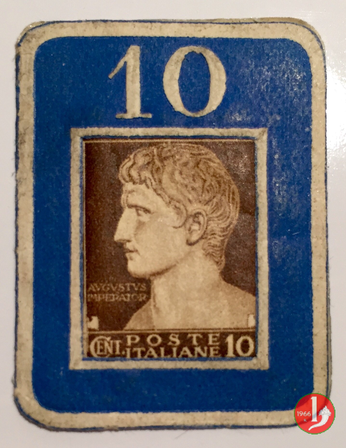 Farmacia Crosetti Leone Dritto: Francobollo da 20, 30 e 50 centesimi della Repubblica Sociale Italiana. Verso: Logo Pubblicitario Farmacia Crosetti Leone | |