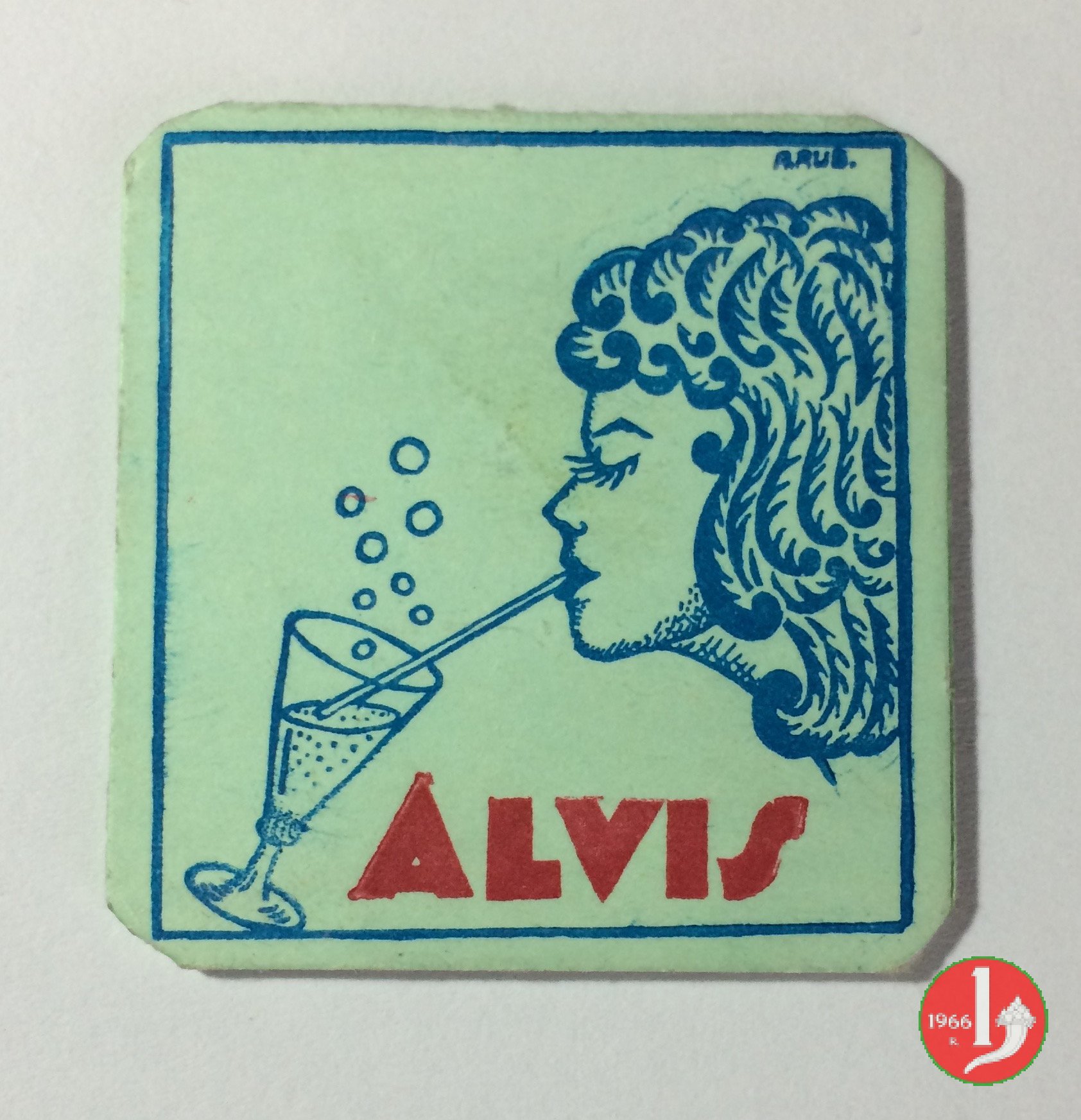 Alvis Bibite - immagine drink Dritto: Cartoncino con francobollo protetto da plastichina trasparente. Disposto intorno da sinistra: Alvis Bibite - PUBBLICITA' AUTORIZZATA G.B. ALLIEVI • CESANO MADERNO • MI Verso: sulla destra immagine di donna che beve in un bicchiere con la cannuccia sotto ALVIS | |