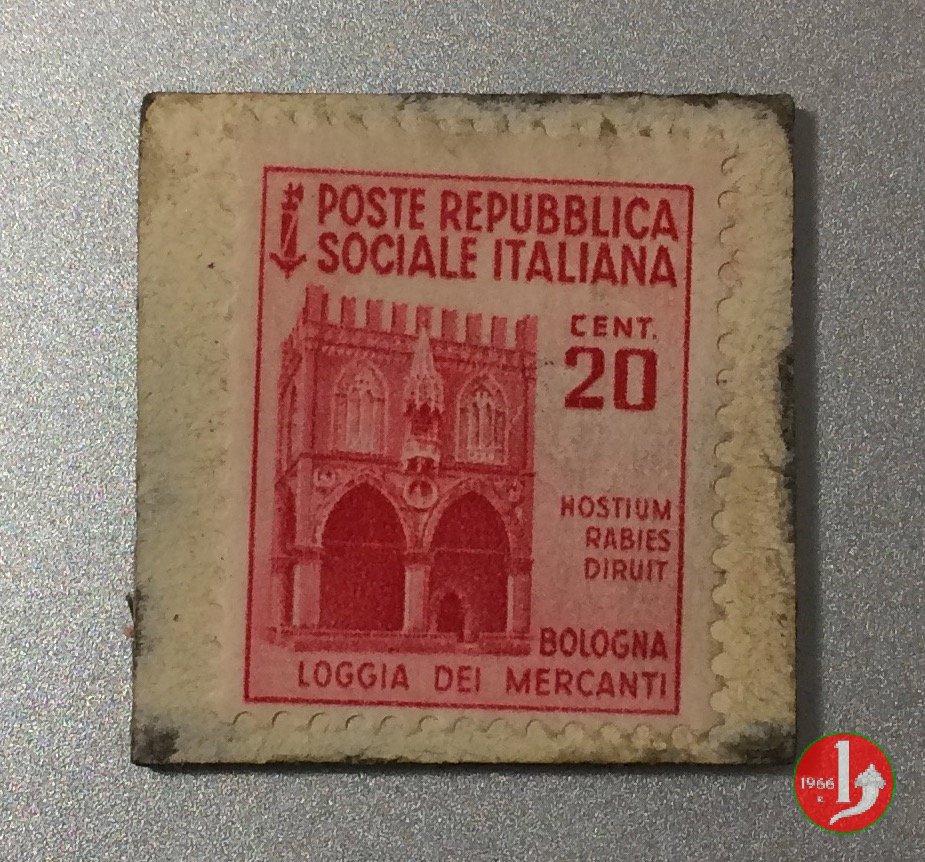 Motori Lombardini Dritto: Francobollo da 20 e 25 centesimi serie monumenti della Repubblica Sociale Italiana. Verso: Stemma aziendale con legenda "MOTORI LOMBARDINI REGGIO EM." | |