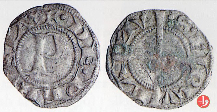 denaro picciolo 1° tipo Dritto: ✠ • DE • PERUSIA. grande P ad anello elaborato accantonata da due stelle in corona rigata Verso: ✠ • S ERCULANU • (N inversa) croce patente accantonata da due stelle al 2° e 3° angolo in corona rigata | |
