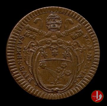 quattrino Dritto: Stemma ovale. Sopra chiavi decussate sormontate da tiara. Inizio della leggenda da sinistra in basso. Legenda: PIVS • SEXTVS - PON • M • A • (anno pontificato) Verso: * || QVATRI || NO || ROMANO in corona d'alloro | |