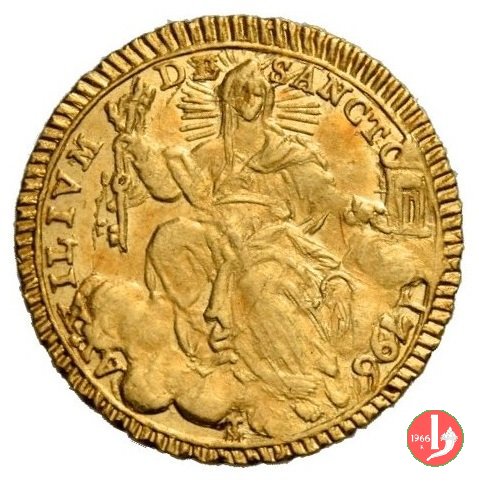 mezzo zecchino Dritto: Stemma ovale. Inizio della leggenda da sinistra in basso. PIVS SEXTVS - PON • M • A • XXII Verso: La Chiesa seduta su nubi. Inizio delle leggenda da sinistra in basso. AVXILIVM - DE - SANCTO - millesimo | |
