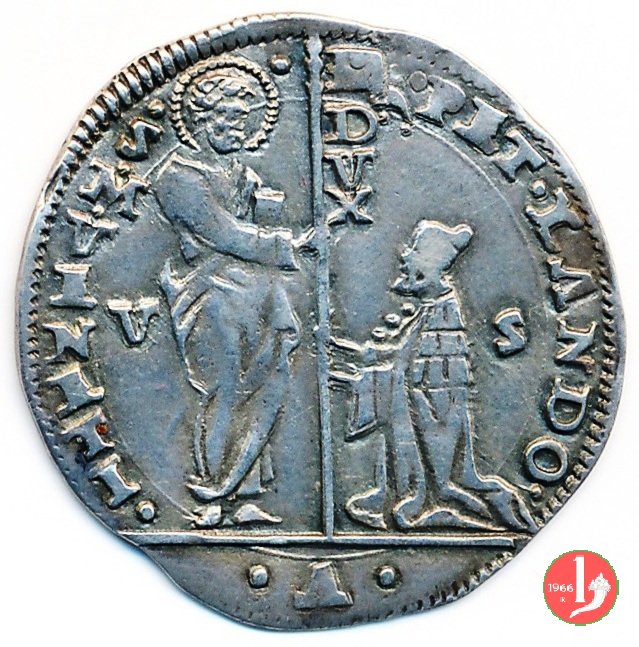 Mocenigo o lira Dritto: PETRVS LANDO S M VENET, S. Marco e il doge Verso: TIBI SOLI GLORIA, il Redentore su piedistallo su cui iniziali del massaro | |