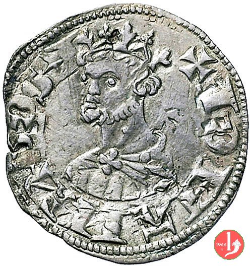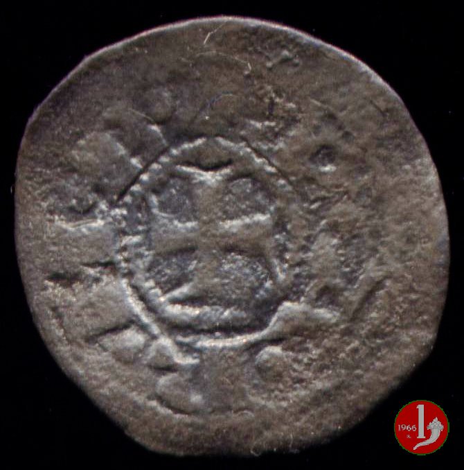 Denaro Imperiale con il castello (1313-1322) Dritto: Nel campo all'interno di un circolo cordonato croce patente con globetto nel primo e quarto angolo, intorno ✠ INPERATOR. Verso: Nel campo all'interno di un circolo cordonato castello a 3 torri sormontato da 3 globetti, intorno ✠ • D • E • P • A • R • M • A •. | |