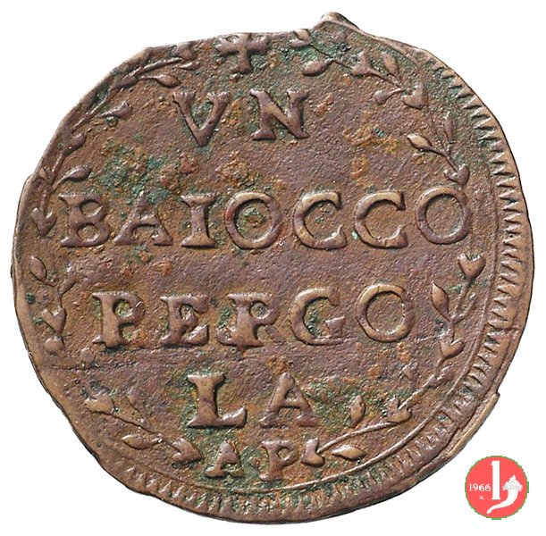 Verso: stella a 6 punte || MEZZO || BAIOCCO || PERGO || LA || AP (in monogramma)