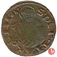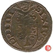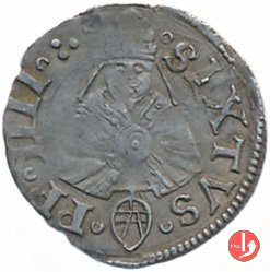 Picciolo Dritto: •SIXTVS.__.PP.IIII /Stemma semiovale sormontato da chiavi decussate e legate e da tiara; senza cerchio Verso: S.PETRVS.MARCHI ![]() /Busto di S.Pietro nimbato, di fronte, con chiave nella destra e libro nella sinistra; senza cerchio |