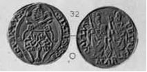 Bolognino papale Dritto: •SIXTVS.__.PP.IIII /Stemma semiovale, sormontato da chiavi decussate legate con globetto e da tiara Verso: •S.PE__TRVS.MARCHIA ![]() /S.Pietro nimbato che, nella barca, tira le reti | |