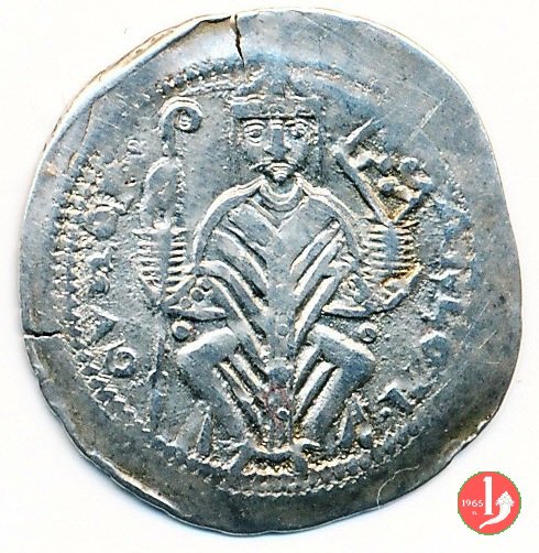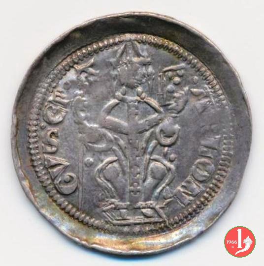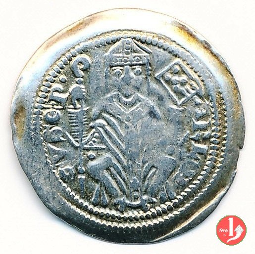 Denaro con tempio Dritto: (anello) CIVITAS (anello // anello) TERGESTV' (anello), tempio su colle Verso: (anello) ARLONGVS (anello // anello) EPISCOPIS (anello // anello), busto frontale del Redentore | |