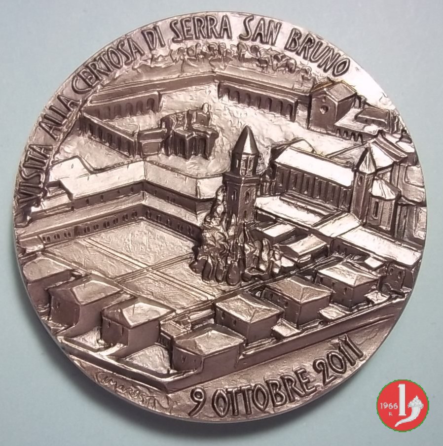 Certosa di Serra San Bruno 09-10-2011 Dritto: BENEDICTUS _ XVI PONT. MAX. busto di 3/4 a sx con berretto, mozzetta e stola sulla spalla sx: in basso, a dx: CDF vista del complesso Conventuale in basso: 9 OTTOBRE 2011 in basso, a sx: CIMAROSTI | |