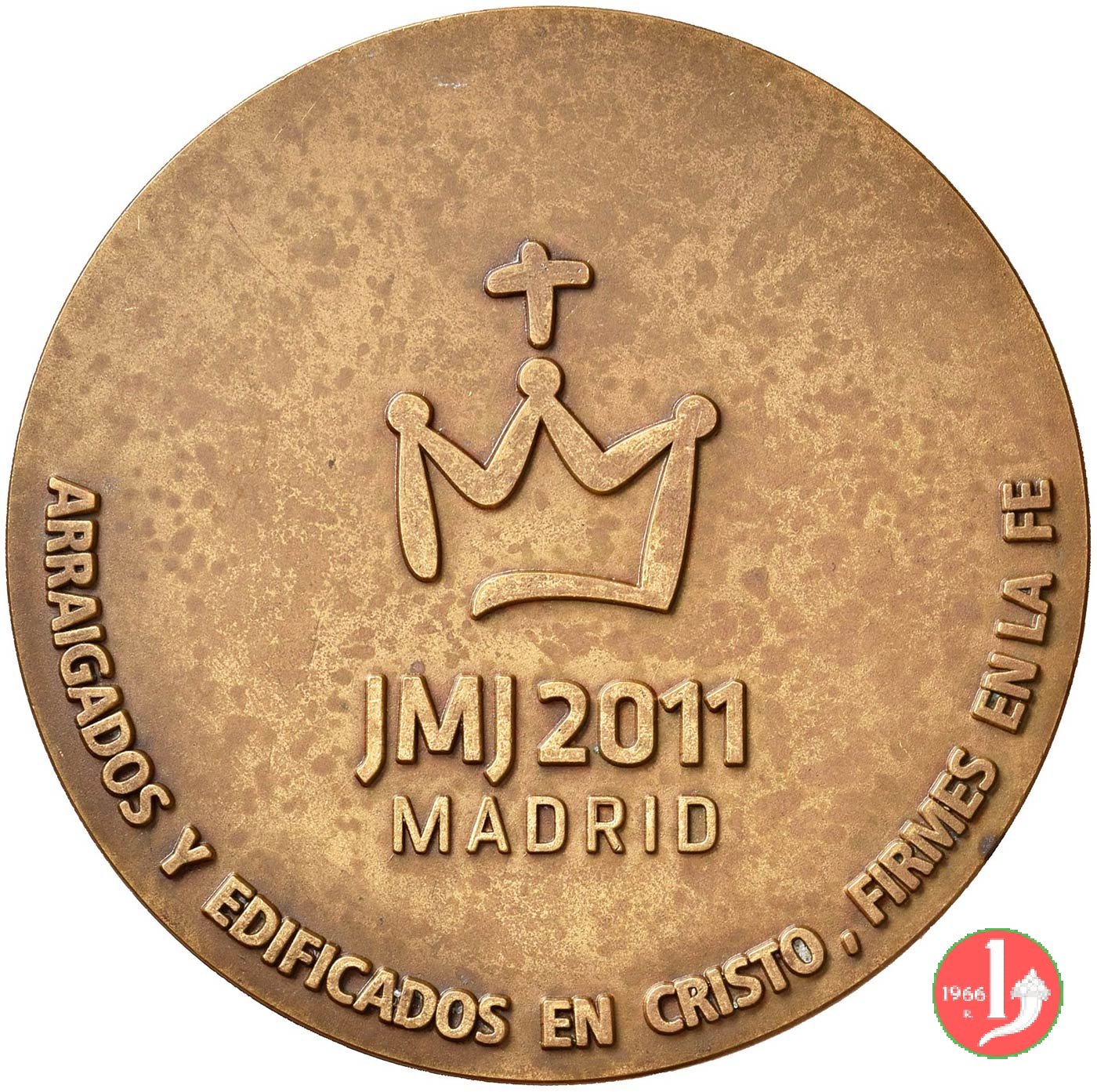 GMG a Madrid - Spagna 16-08-2011 Dritto: Il Papa in piedi, volto a dx, con mitra, pastorale, pianeta e pallio, benedicente la folla dei giovani radunata nella Piazza della Cattedrale della B. Vergine di Almundena a Madrid in basso, presso il bordo: monogramma JMC in basso, circolarmente: ARRAIGADOS Y EDIFICADOS EN CRISTO, FIRMES EN LA FE | |