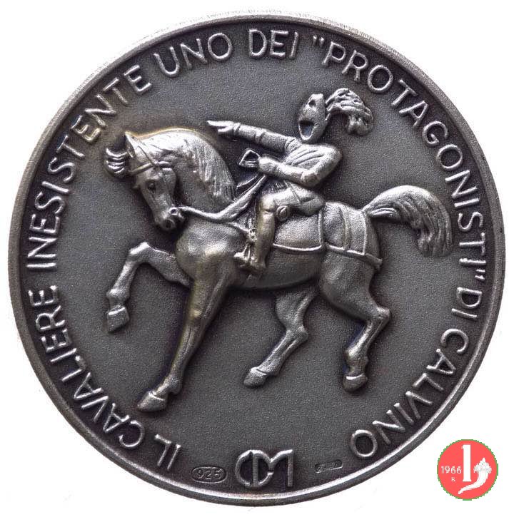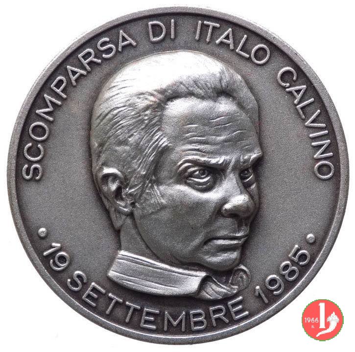 Italo Calvino 1985 Dritto: SCOPARSA DI ITALO CALVINO busto di 3/4 a dx con camicia sotto circolarmente: • 19 SETTEMBRE 1985 • Cavaliere corazzato saluta verso sx in basso: CDM |