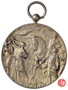 Quiliano ai Reduci della Campagna di Libia 1913 Dritto: Parata militare trionfale con figure femminili che suonano trombe, militari e cavaliere volti di 3/4 a sx Verso: in alto: Stemma di Quiliano nel campo, a sx con a fianco la Sibilla Libica (particolare tratto dalla Cappella Sistina): QUILIANO = AI FIGLI REDUCI = DALLA CAMPAGNA = LIBICA = PERCHE' IL RICORDO = SIA PERENNE = INCITAMENTO = AL BENE in esergo: 1 GIUGNO 1913 in basso: M. NELLI | |