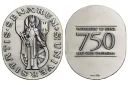 Sterzing 1983 Dritto: 1908 - 1983 HEIMATFCHUTZ IN TIROL Aquila ad ali spiegate su paesaggio in basso a sx: S. JOHNSON in basso a dx: O. HALLER in basso: numerazione nel campo pentapartito: edifici nella medaglia centrale: STERZING 8-10-1983 | |
