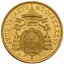Doppio Zecchino o Leonina del I tipo Dritto: Stemma ovale in cornice sormontato da tiara e chiavi con impugnatura ovale e fiocchi; sotto, rami di lauro. Intorno: LEO XII P. - M. ANNO III; in basso il segno di zecca R. tra G. C. (iniziali dell'incisore Giuseppe Cerbara). Verso: Figura femminile, allegoria della Chiesa Romana, seduta a sinistra su globo, reggente croce e calice. Intorno: POPVLIS - EXPIATIS •; in esergo, G • CERBARA • F • e millesimo (1825). | |