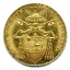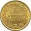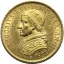 5 lire d'oro Dritto: Nel campo, busto a sinistra con zucchetta di Pio IX con sotto un fregio con una rosetta. Intorno PIVS IX PON • MAX • A • e anno di pontificato. Verso: Valore (5 LIRE) e millesimo su tre righe tra due rami di lauro e quercia incrociati in basso. Intorno STATO PONTIFICIO tra 3 stellette a 5 punte. In basso segno di zecca (R). | |