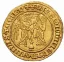 Saluto d'oro Dritto: + KAROL' • DEI • GRA • IERL' • ET • SICILIE • REX, stemma a forma di cuore, bipartito, di Gerusalemme e di Francia, sopra crescente lunare tra due astri a sei raggi, ai lati due rosette tra quattro astri a sei raggi. Verso: +AVE • GRACIA • PLENA • DOMINUS • TECUM, l'Annunciazione alla Beata Vergine, in basso vaso senza manici con pianta di giglio. | |