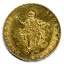 Saluto d'oro Dritto: +KAROL' • SCD • DEI • GRA • IERL' • SICIL • REX, stemma a forma di cuore, bipartito, di Gerusalemme e di Francia, sopra crescente lunare tra due astri a sei raggi, ai lati due rosette tra quattro astri a sei raggi Verso: + AVE • GRACIA • PLENA • DOMINUS • TECUM, l'Annunciazione alla Beata Vergine, in basso vaso senza manici con pianta di giglio. | |