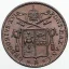 2 soldi Dritto: Busto a sinistra con zucchetta di Pio IX all'interno di un cerchio di perline. All'esterno del cerchio di perline PIVS • IX • PONT • MAX • ANN • e anno di pontificato. In basso il millesimo tra due stellette. Verso: Nel campo all'interno di un cerchio di perline, prima indicazione di valore (2 SOLDI) su due righe, sotto segno di zecca (R). All'esterno del cerchio STATO PONTIFICIO e seconda indicazione del valore (10 • CENT •) tra due stellette a sei punte. | |