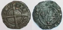 Denaro (con stemma) Dritto: Croce accantonata da quattro piccole croci