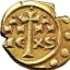 Denaro (con palmizio) Dritto: Croce patente entro ornato di quattro segmenti e quattro rombi.