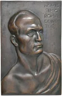 In Onore di Benito Mussolini -C- Obverse: nel campo in alto a dx: NOVIS = SIMO = ROMAE= CONDI = TORI Busto di 3/4 a dx con toga romana | |