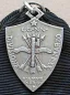 4° Reggimento Alpini - Uzdomir 1942 -C- Obverse: in campo bianco: Aquila in picchiata su vetta di colle nel campo a dx: VAL = CHISONE in basso a smalti rossi: A TORNO I DEMONI in corsivo: CAP. GHILA (?) | |