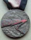 Caduta del Regime Fascista 25-07-1943 Obverse: VESTIG _ ANDO ATQVE. DEFE _ RENDO • SERVIT • • • testa di cane con guinzaglio con targhetta PNF trattenuto da mano con sulla giubba svastica e sormontato da tre frecce orizzontali verso sx nel campo a dx: MCM = LXIII la bilancia della IVSTITIA pende verso il piatto col fascio da un lato e ME NE FREGO e tomi di leggi dall'altro, alla base catene spezzate con nastro LIBERTAS | |