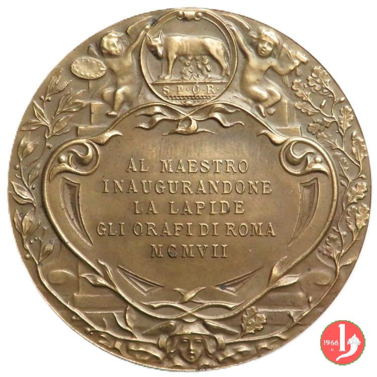 A Benvenuto Cellini gli Orafi 1907 Obverse: BENVENUTI _ CELLINI busto a sx con giacca ordita con motivi floreali in basso, a sx: L. GIORGI |