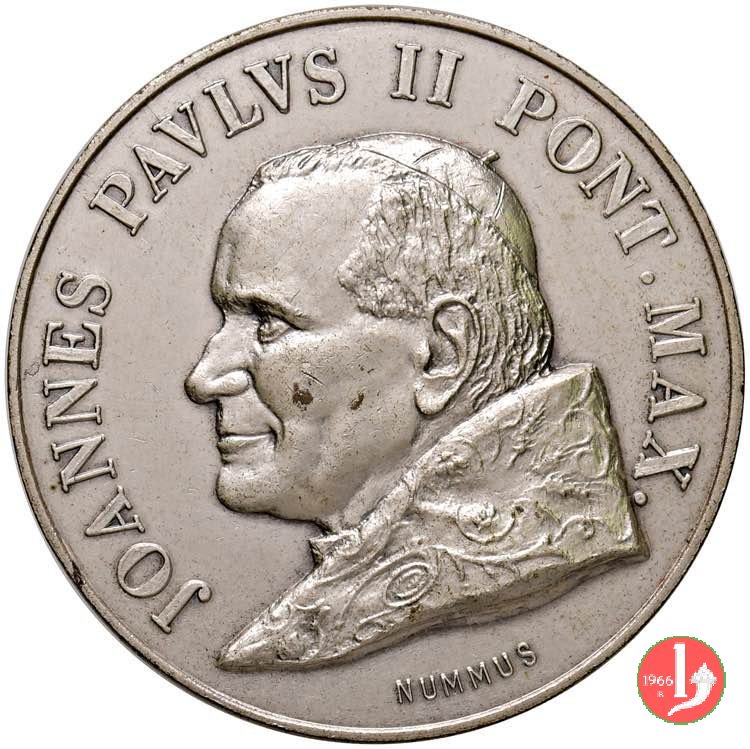 Elezione al pontificato-Stemma e Galero Dritto: ✠ IOANNES PAULUS II • PONT • MAX ✠ busto a sx con veste talare in basso: MISAN in basso: MCMLXXVIII | |