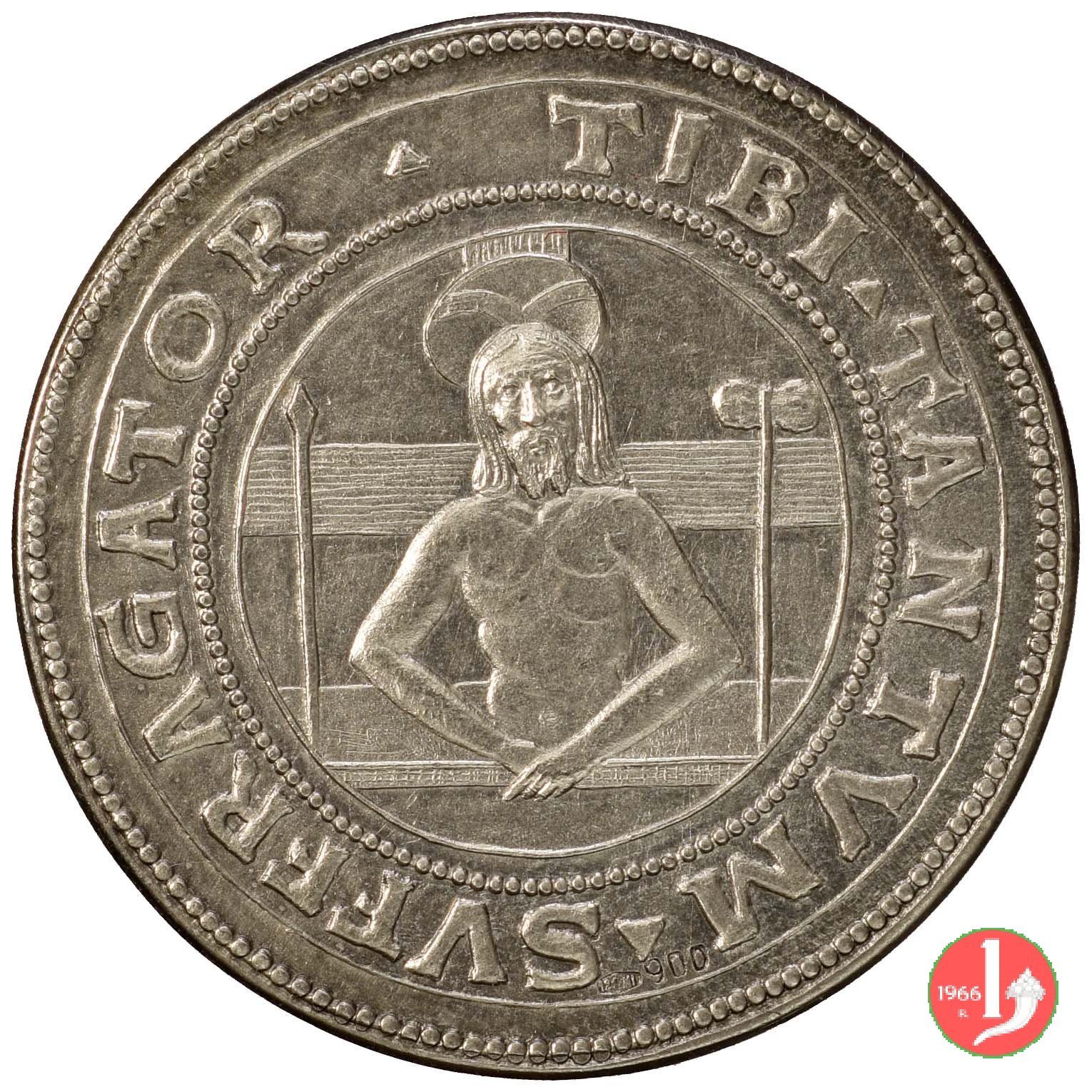 Cotignola - Francesco Sforza 1979 Dritto: FRANCISCVS SFORTIA = ![]() DVX MEDIOLANI ![]() ![]() entro cornice perlinata: busto a dx con cappello e abito ricamato con leone ai lati: COTINIOLA _ AA. MCMLXXIX in basso a sx presso la cornice interna: TERUGGI entro cornice perlinata: Stemma sormontato da cimiero coronato con biscione, tra due rose con stelo, scopetto, tre anelli intrecciati e molla in basso a sx: SJ | |