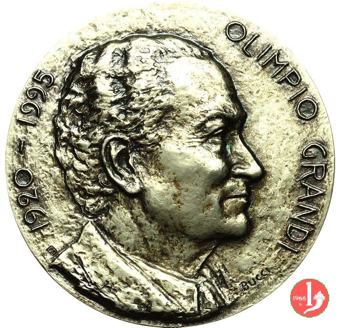Olimpio Grandi - 50° Domus Nova 2001 Dritto: 1920 - 1995 _ OLIMPO GRANDI busto a dx con giacca e cravatta in basso, a dx: BUCCI logo della Domus Nova ai lati: 1961 _ 2001 sotto: DOMUS = NOVA | |